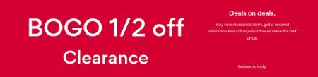 Hurry in and buy one clearance item, get a second clearance item of equal or lesser value for half price in store.