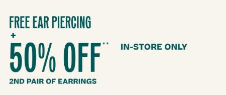 Hurry in and receive free ear piercing + 50% off 2nd pair of earrings in store.